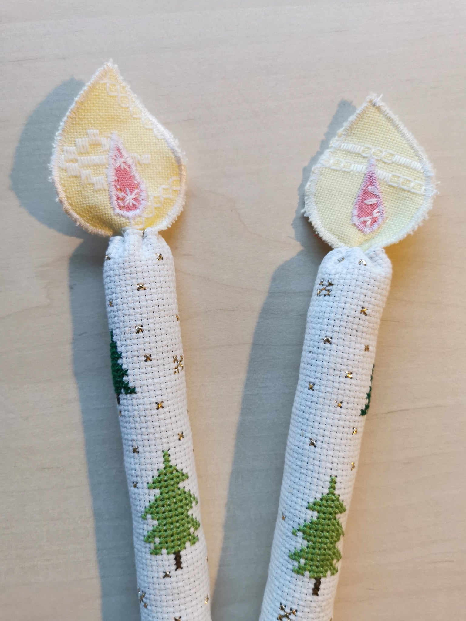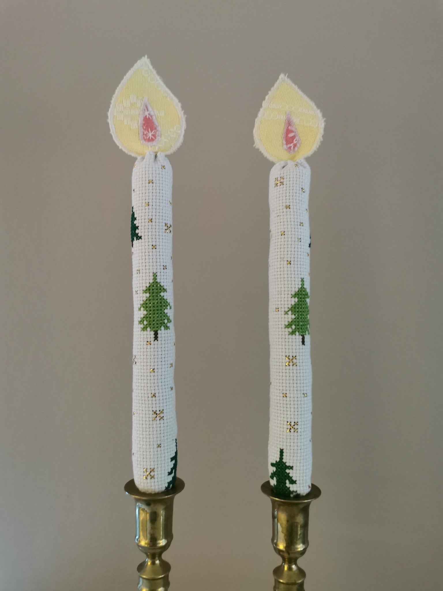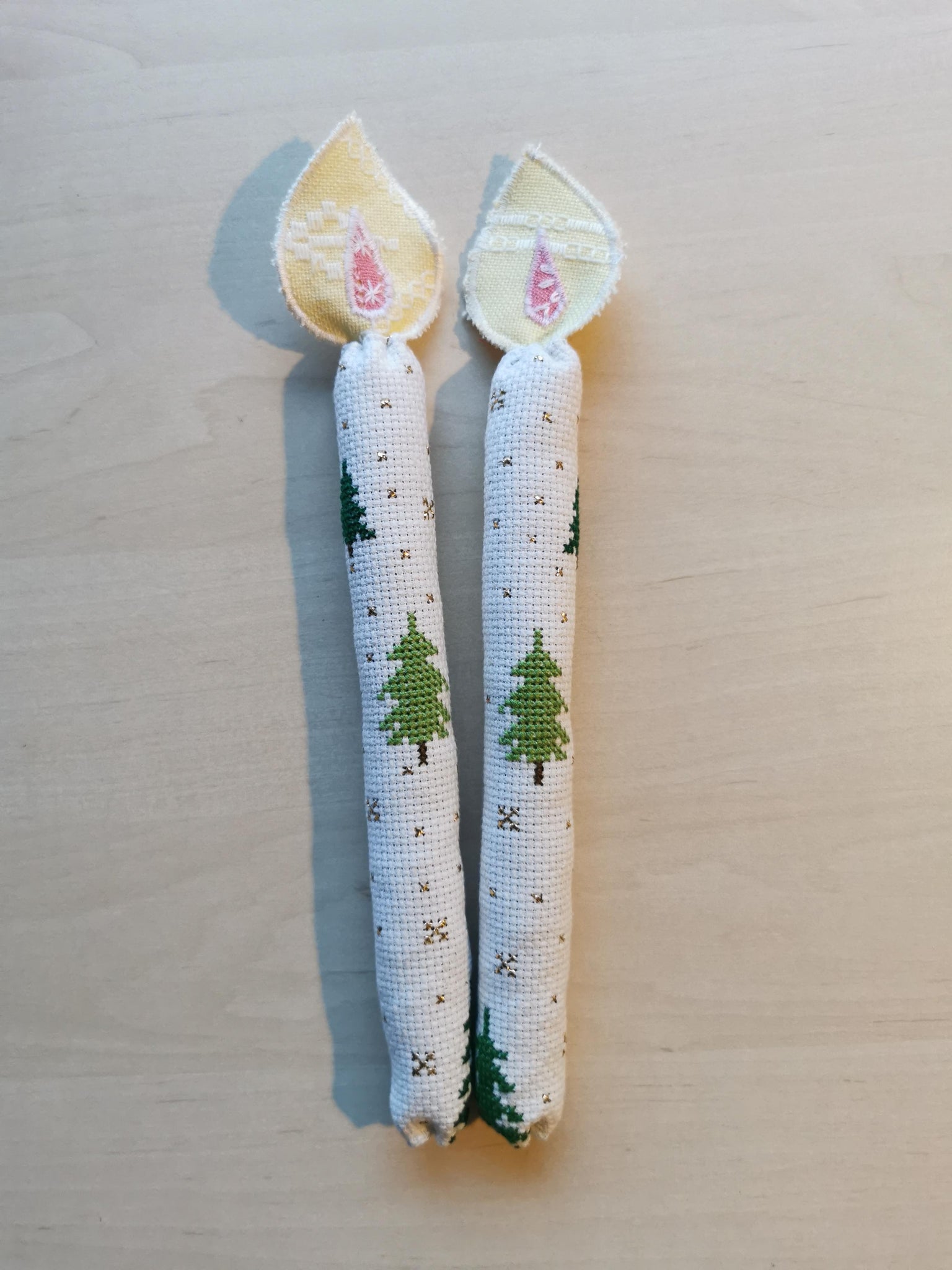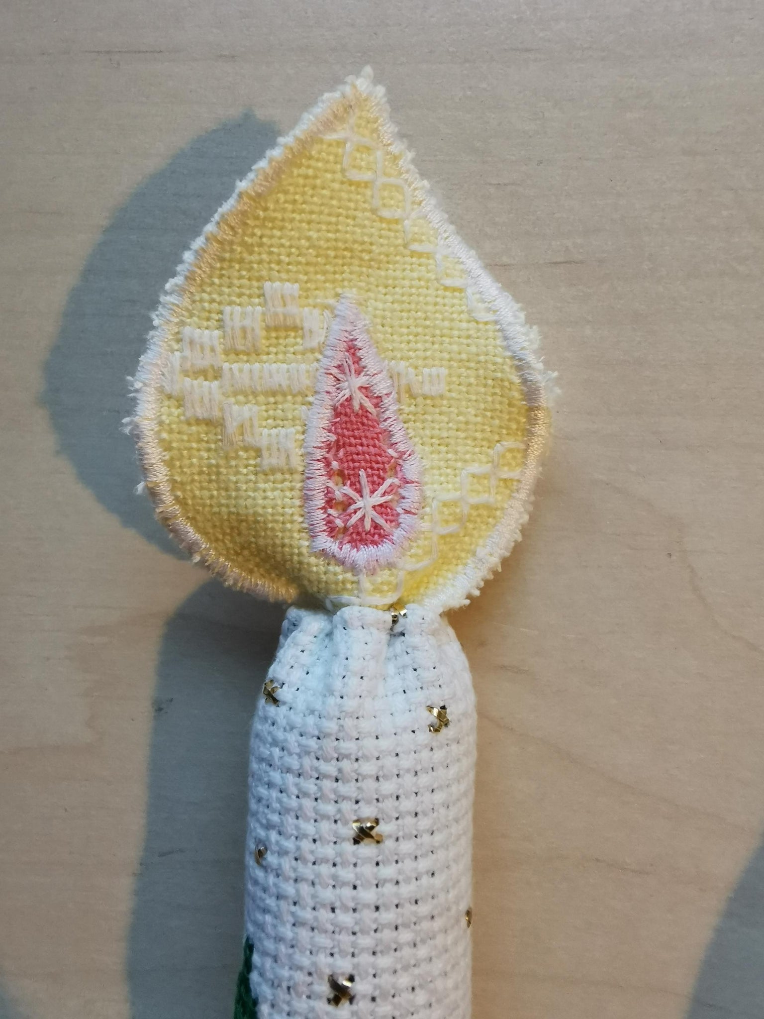 Både lys og den lille flamme er syet af nøje udvalgte vintagematerialer.