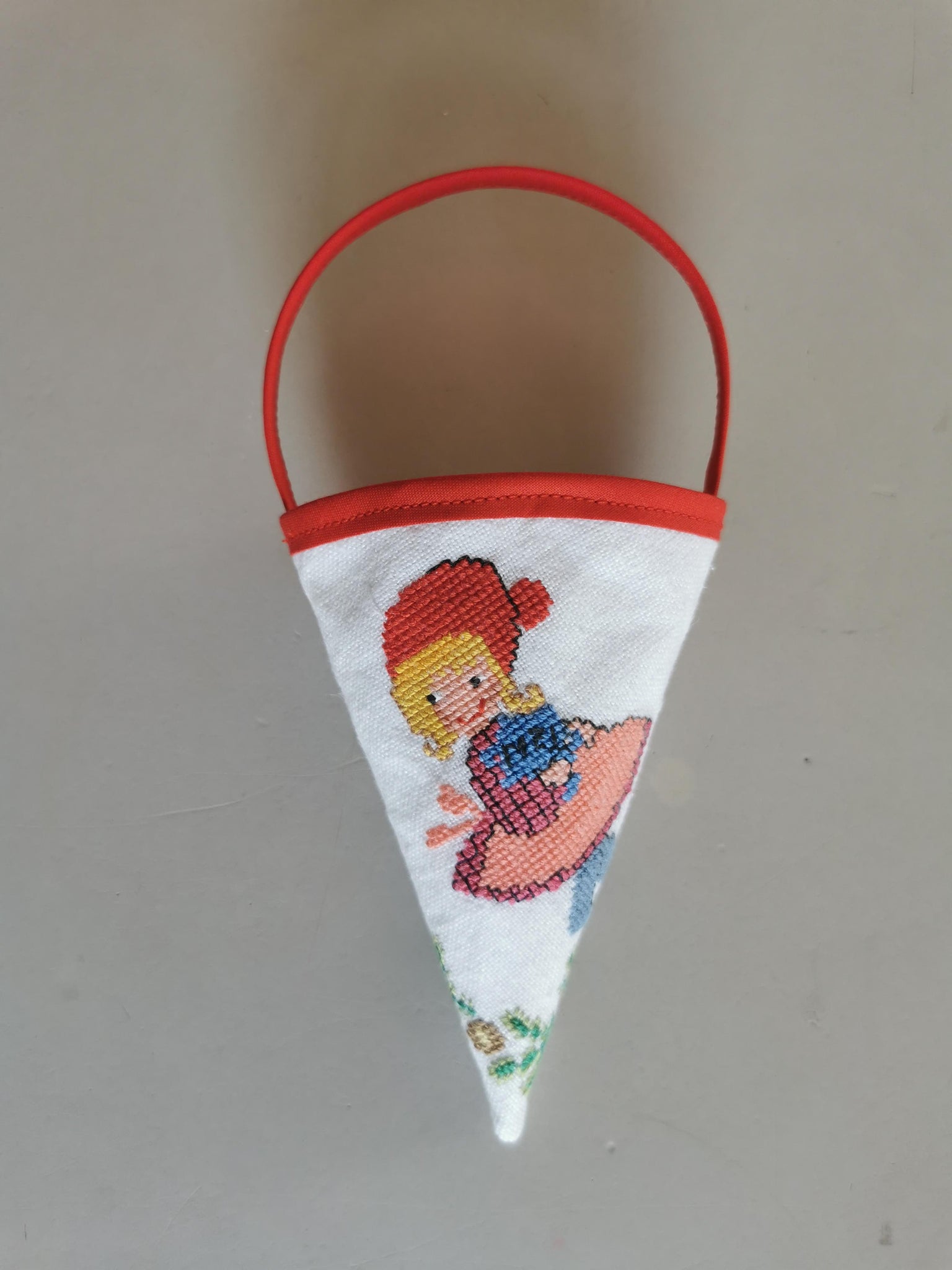 Kræmmerhus syet af håndbroderet vintagetekstil.