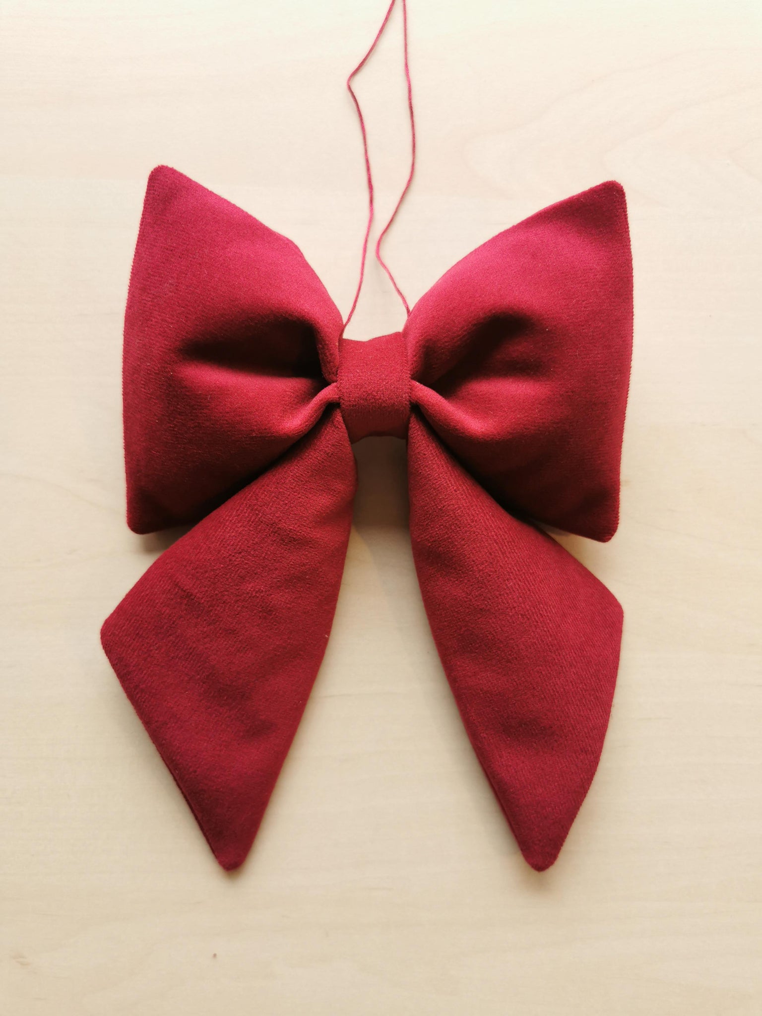 Sløjfen måler ca. 16x21 centimeter og vil pynte fint i vinduet, på en gren eller som ophæng andre steder.