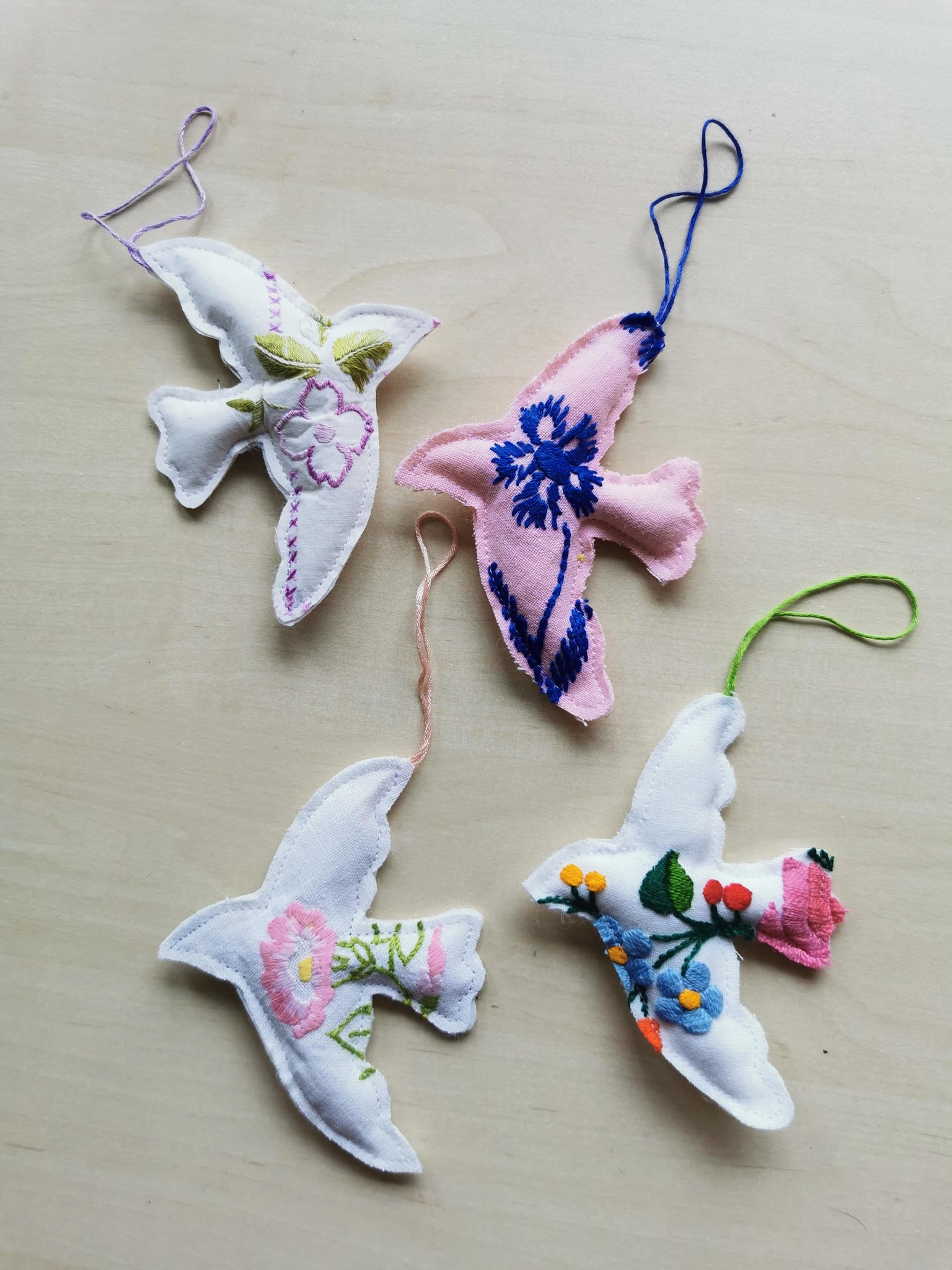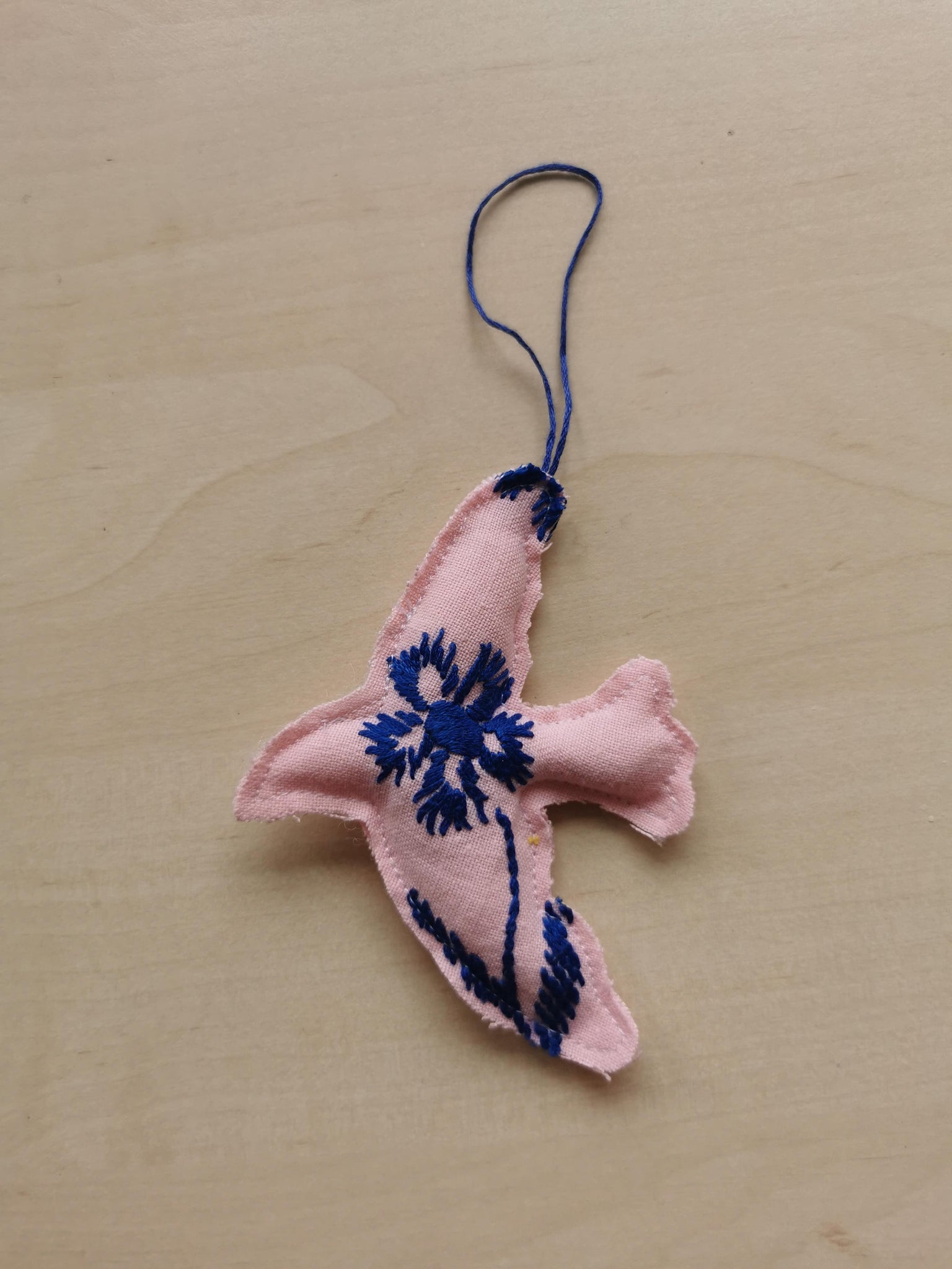 Sød lille fredsdue syet af håndbroderet vintagestof. Den har en lille snor til ophæng og måler ca. 11 cm. fra vingespids til vingespids.