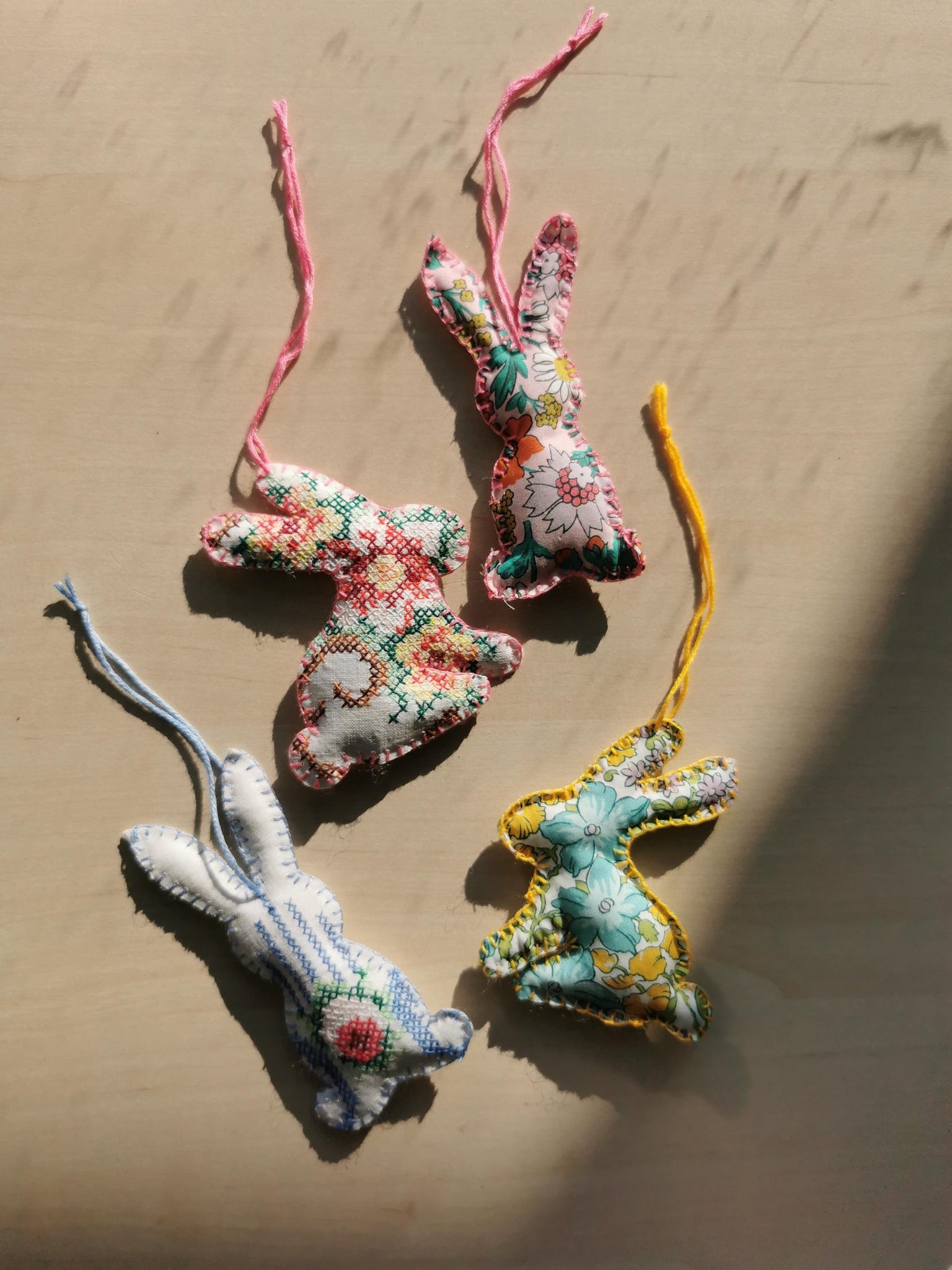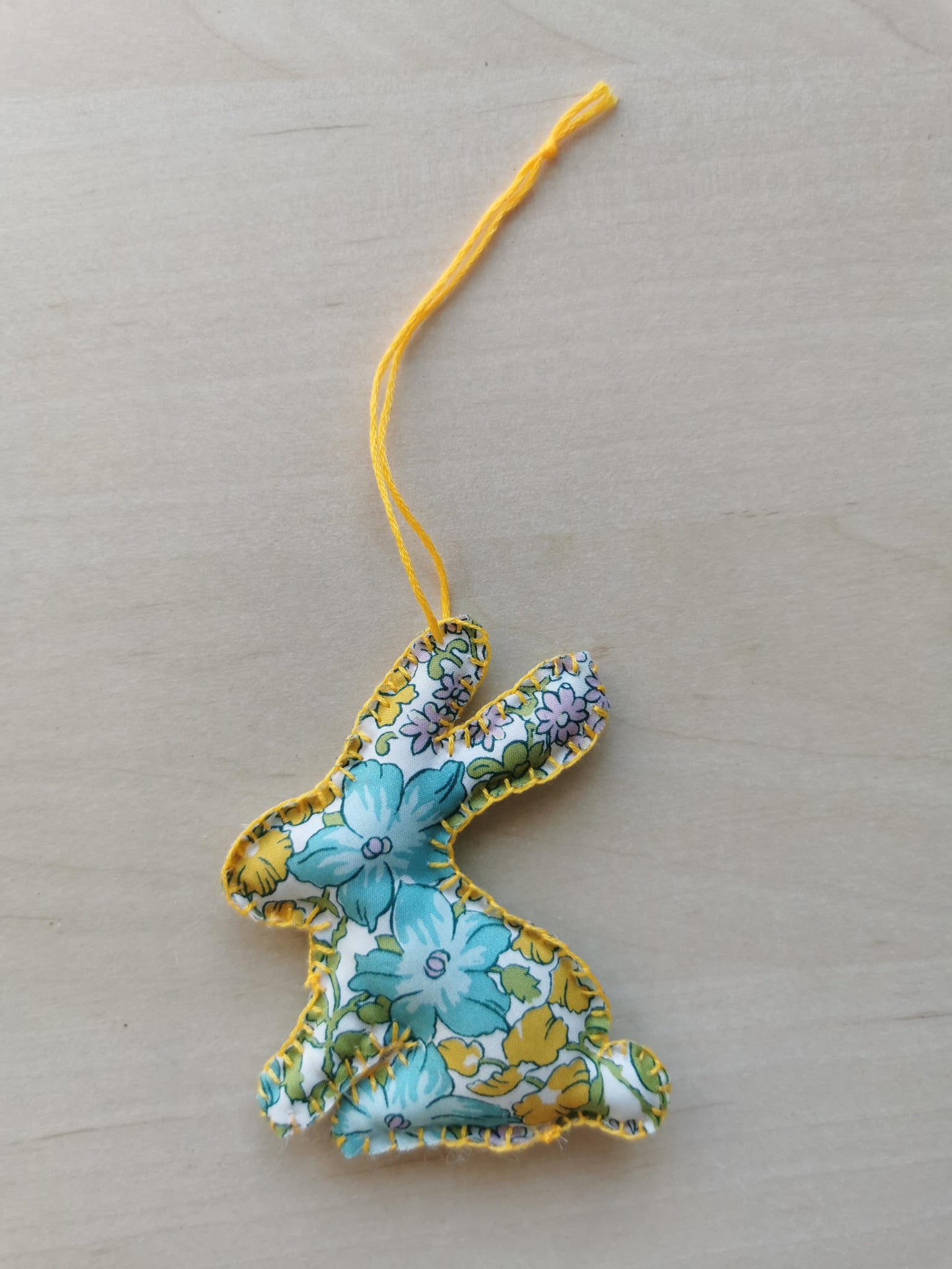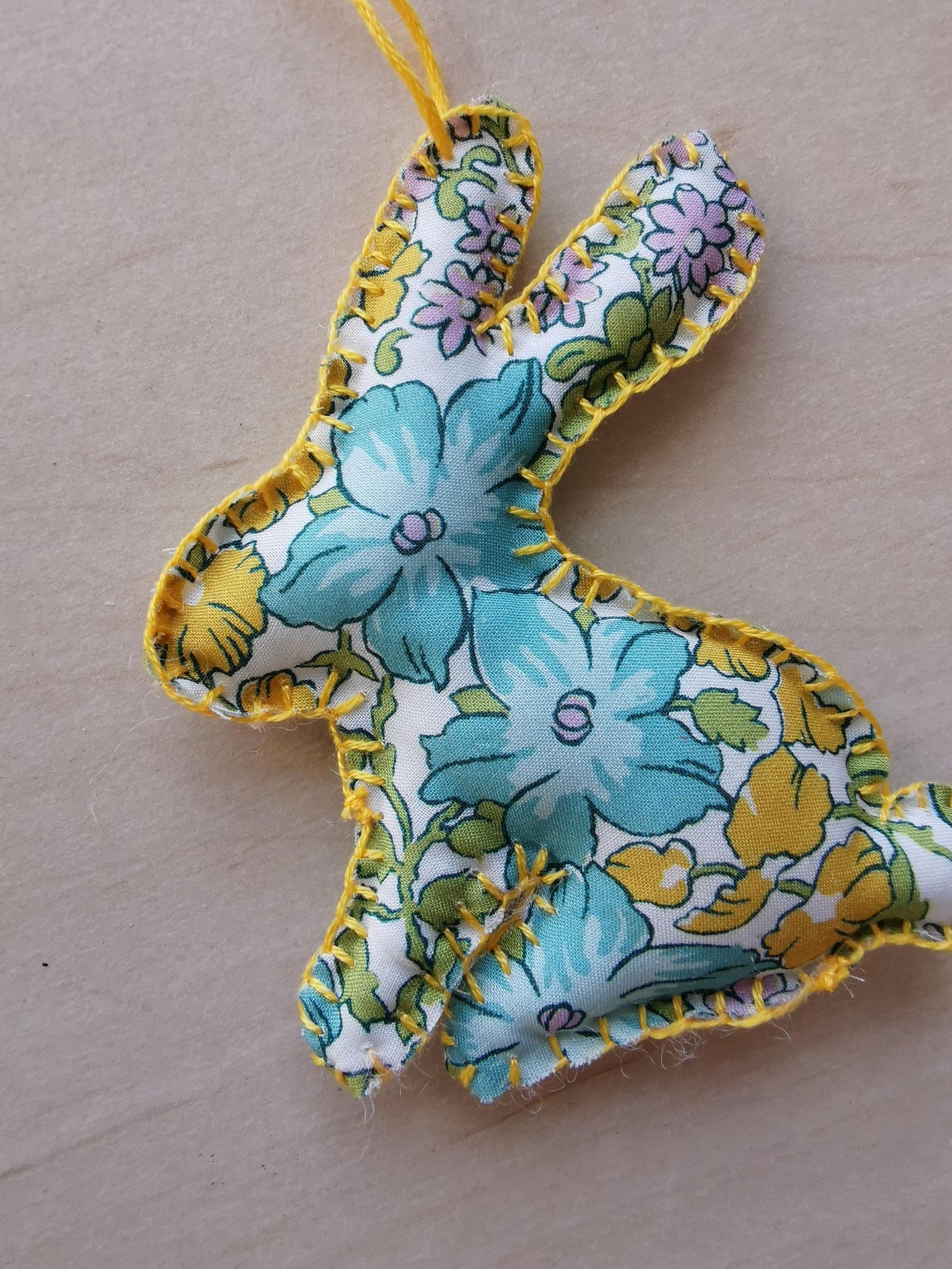 Et yndigt lille håndsyet påskeophæng, syet af Liberty stof.