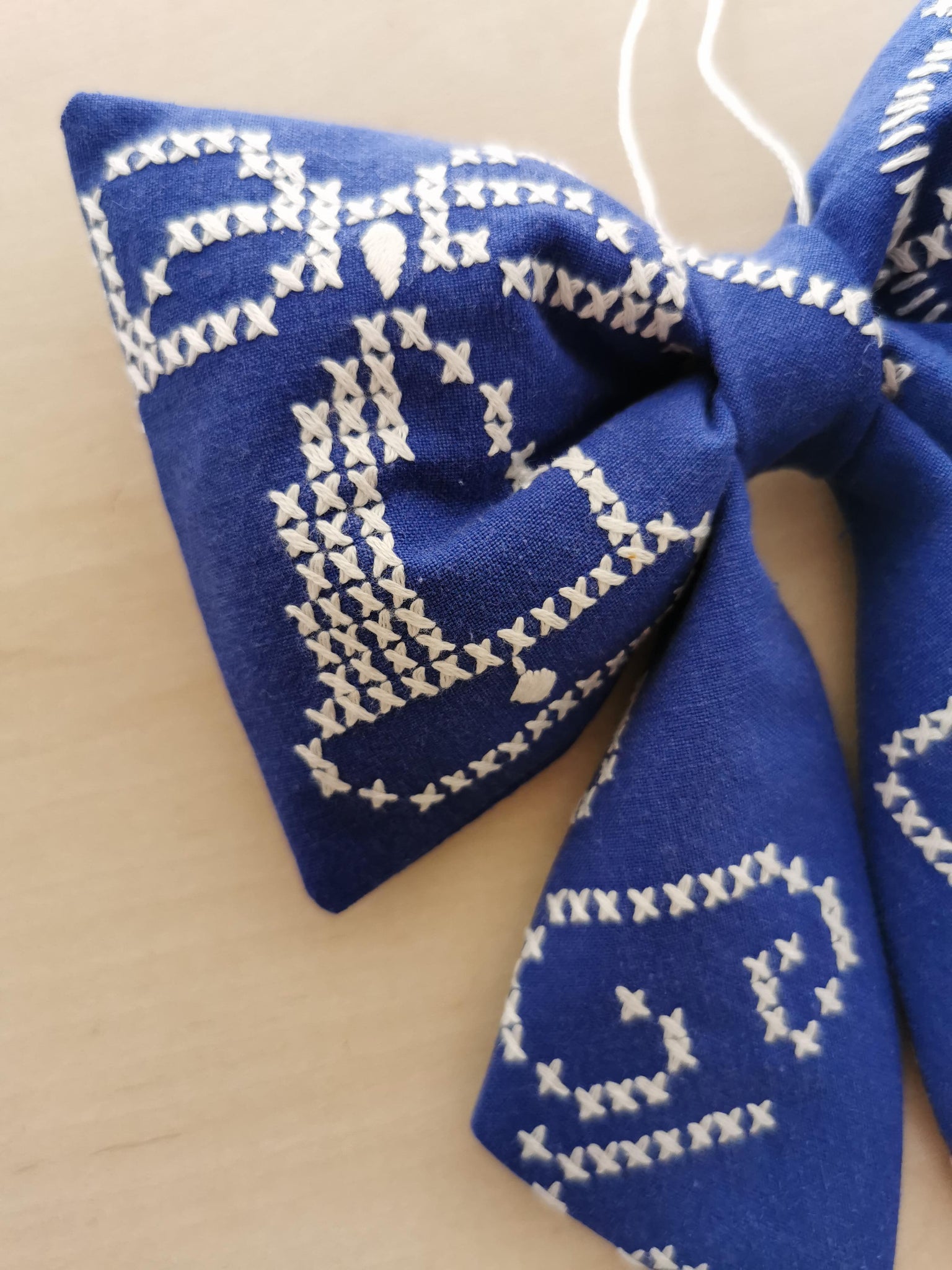 Sløjfe - blå med korsstingsbroderi