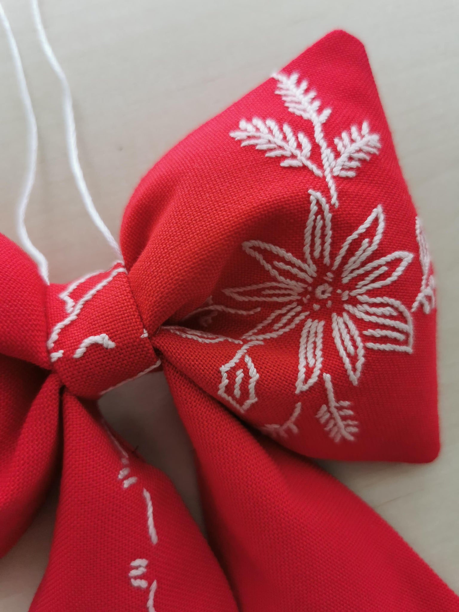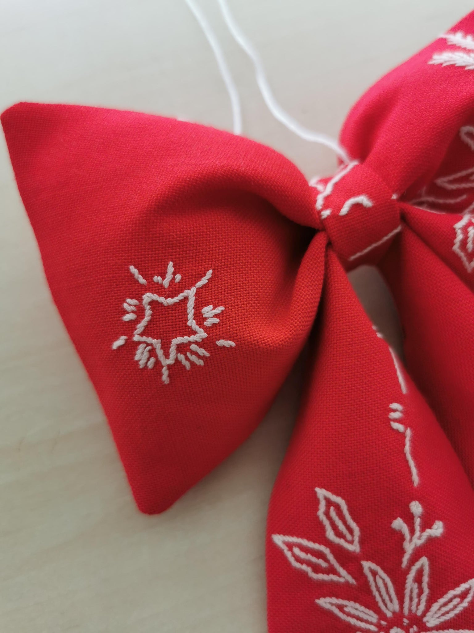 • Indlæs billede til gallerivisning Sløjfe - rød med hvidt broderi