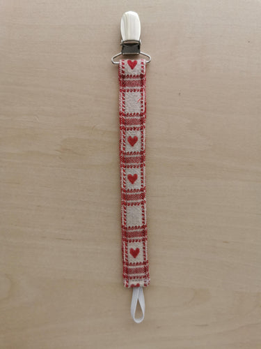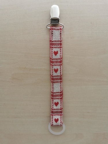 Suttesnor vævet rødt og hvidt med hjerter (elastikstrop)