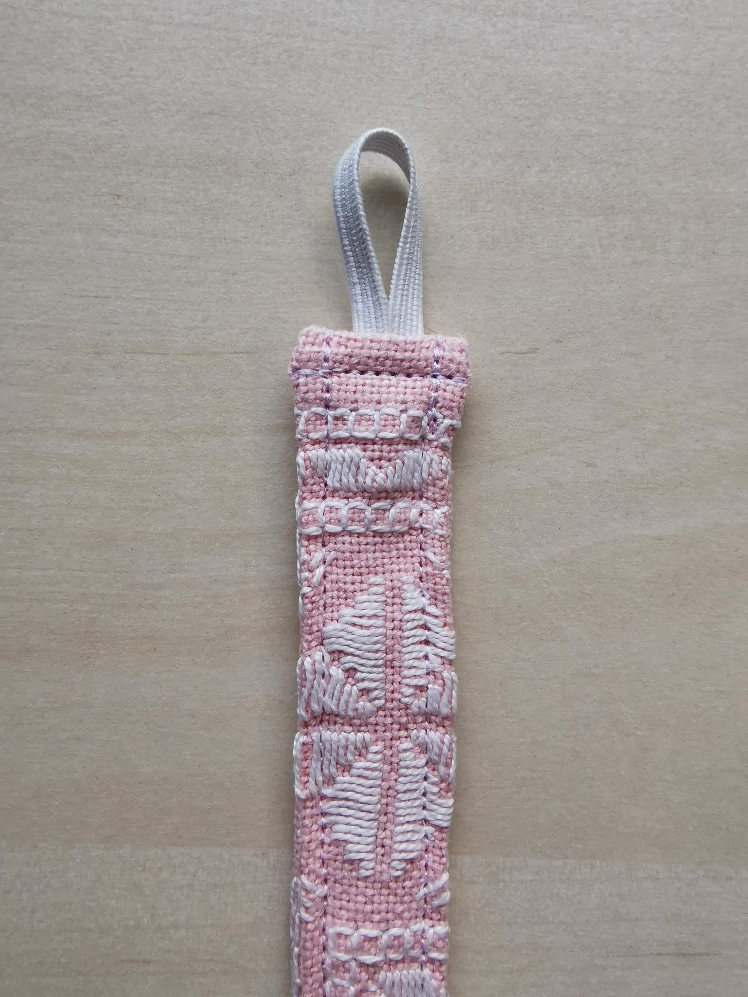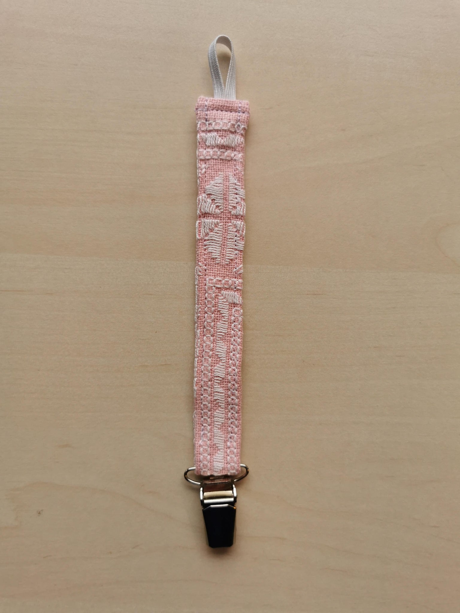 • Indlæs billede til gallerivisning suttesnor - lyserød med hvidt håndbroderi