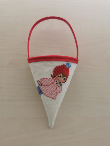 Sløjfe - rød med korsstingsbroderi