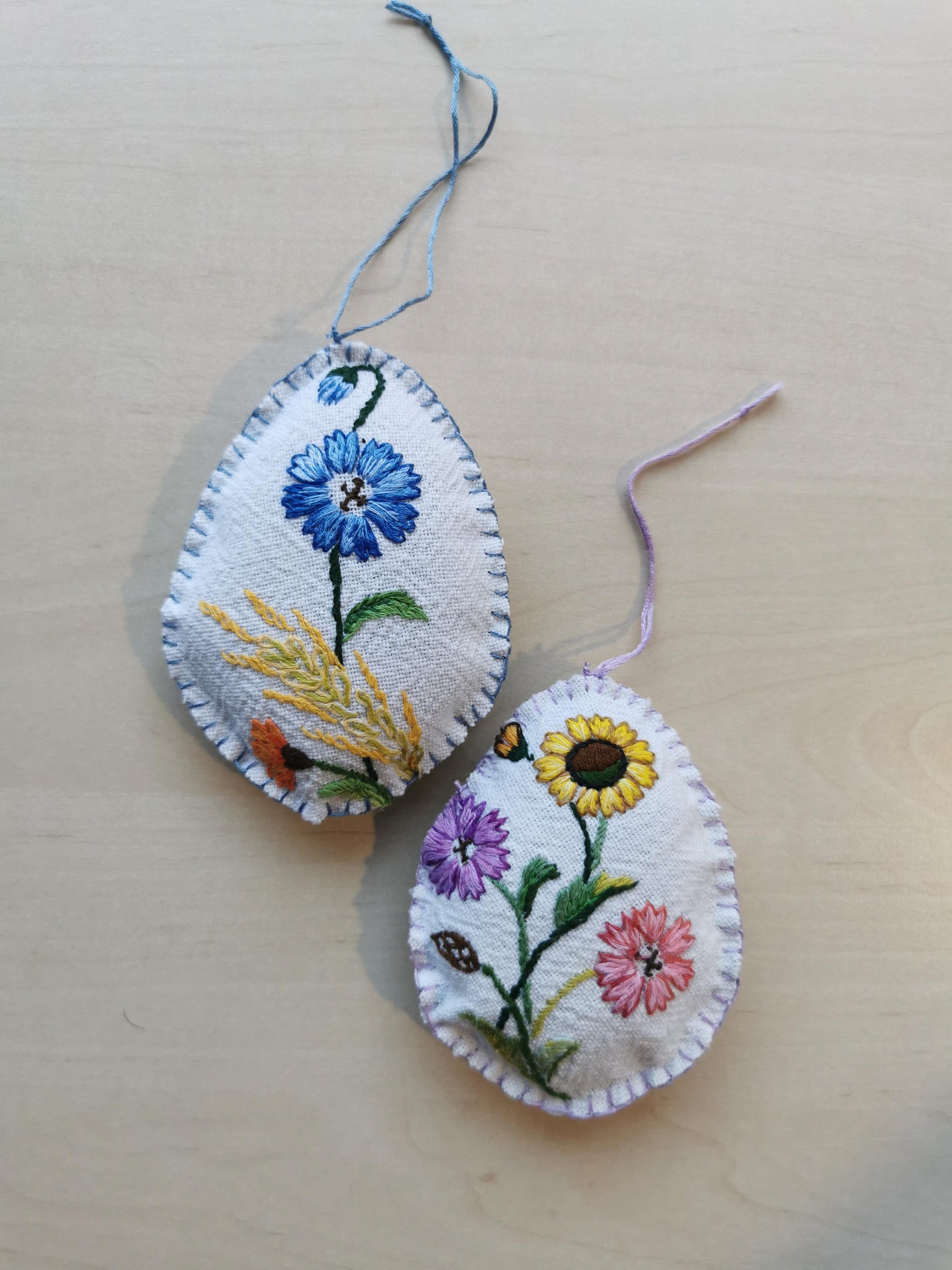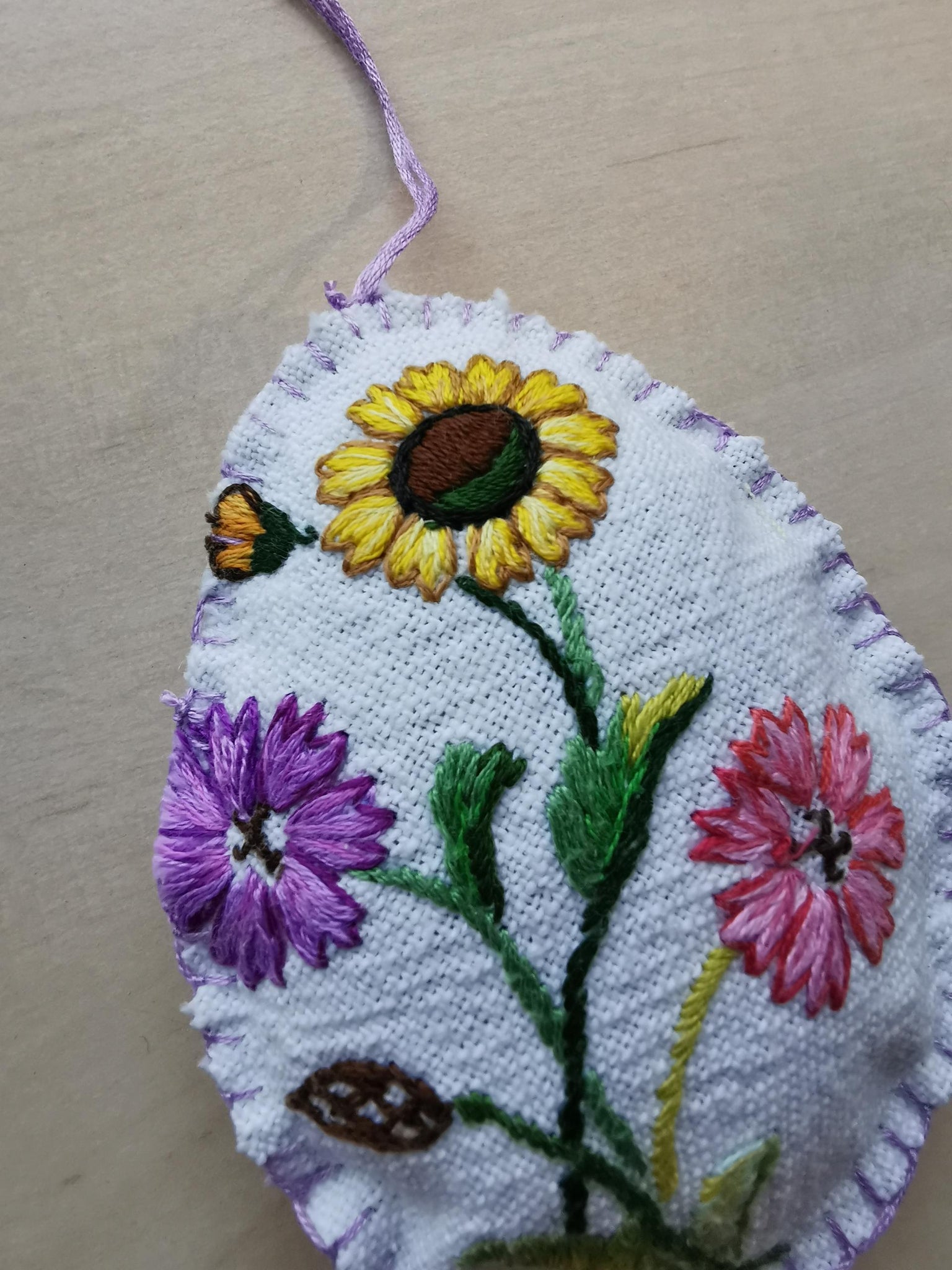 Håndsyet påskeæg med fint og detaljeret håndbroderi af smukke markblomster.